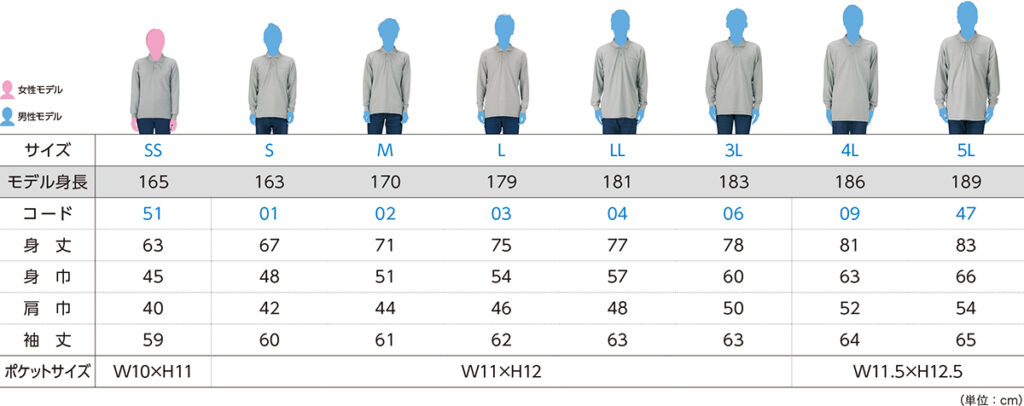 5.8オンス 長袖ポロシャツ (ポケット付 綿・ポリエステル混紡)